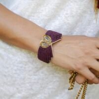 Tous nos produits sont fabriqués à la main, avec du cuir, du fil de soie, des sequins et autres perles et pierres semi-précieuses ! Il faut donc en prendre le plus grand soin.