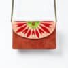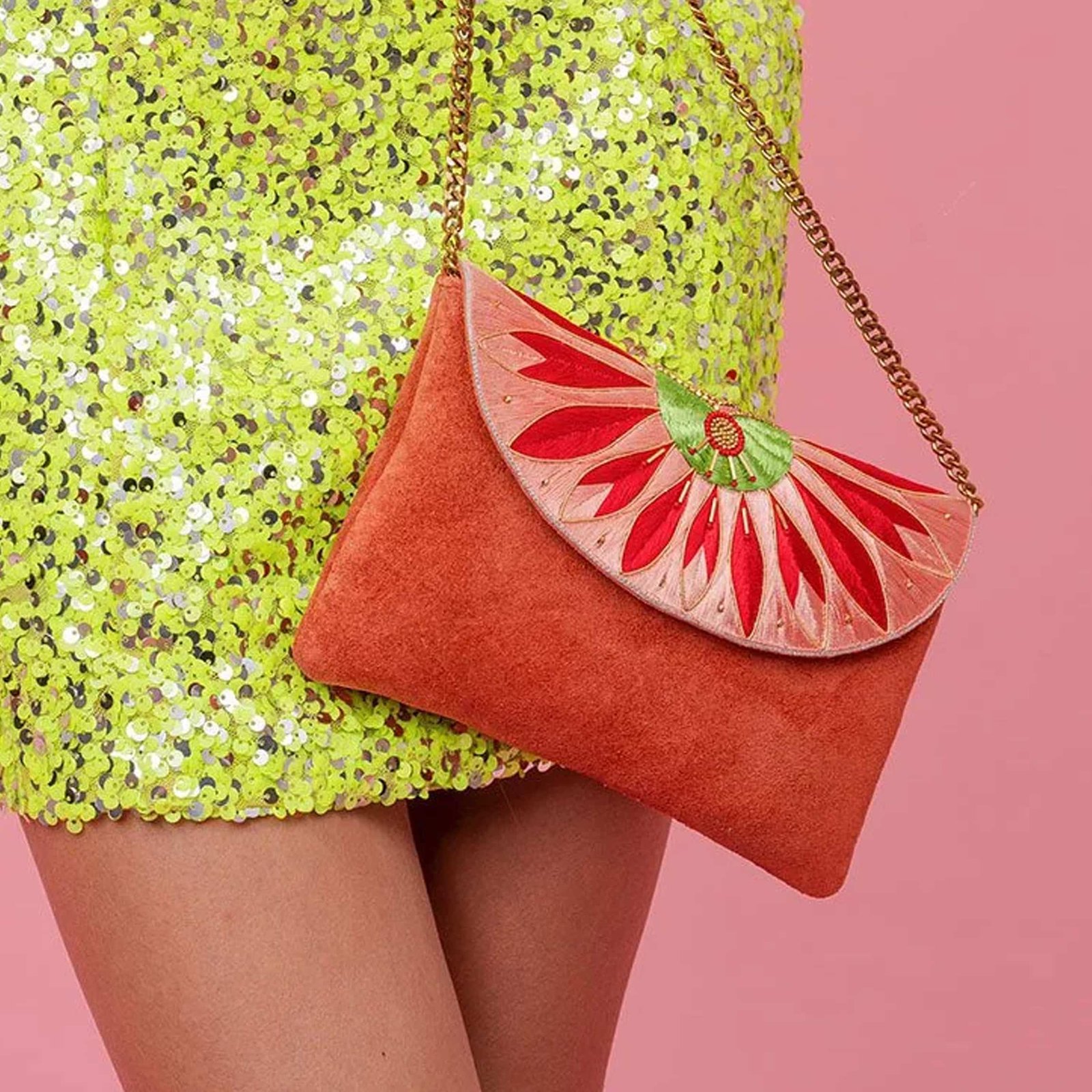 Pochette brodée à la main avec du fil de soie, des perles en laiton et des perles japonaises. Cuir souple, intérieur tissu, chaine en laiton inoxydable et anti-allergène.