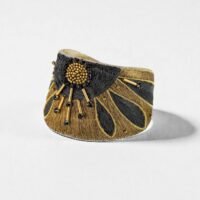 Le bangle Apollon Apache Metallic est une pièce structurante, conçue pour habiller le poignet avec caractère. Sa broderie associe fils métallisés et strass scintillants pour un rendu intense et lumineux.