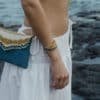 Tous nos produits sont fabriqués à la main, avec du cuir, du fil de soie, des sequins et autres perles semi précieuse. Il est nécessaire d’éviter le contact avec l’eau (salée ou chlorée), les détergents ainsi qu’avec des huiles et produits cosmétiques, l’alcool, les produits chimiques et acides.