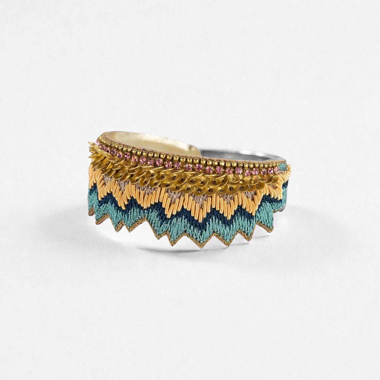 Créés à partir d’une technique de broderie verticale unique, chacun de nos bijoux est le fragment d’un savoir-faire ancestral datant des premiers maharajas.