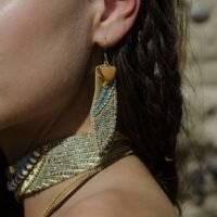 Les boucles d’oreilles Chems Cheyenne Nahua jouent sur la verticalité. Leur forme plume allonge la silhouette et attire naturellement le regard.