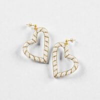 Boucles d’oreilles brodées à la main de fil de soie avec au centre une pierre pink jade, white quartz ou cherry. Attaches en laiton inoxydable et anti-allergène.
