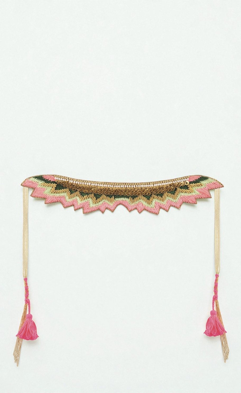 Chaque choker Nahua est le fruit d’une collaboration entre Isabelle, créatrice de la marque, et un atelier de brodeurs en Inde, héritiers d’une tradition ancestrale.