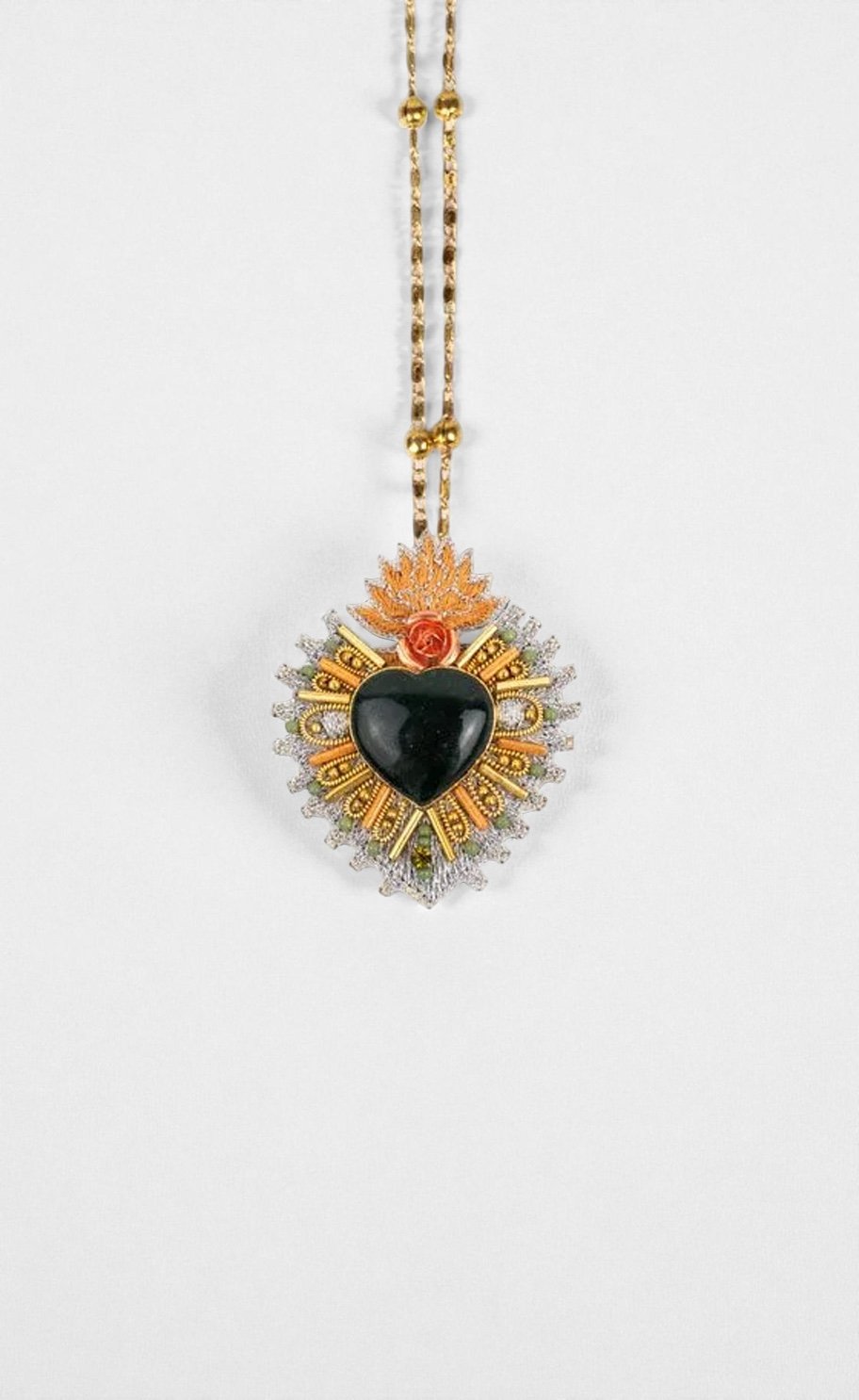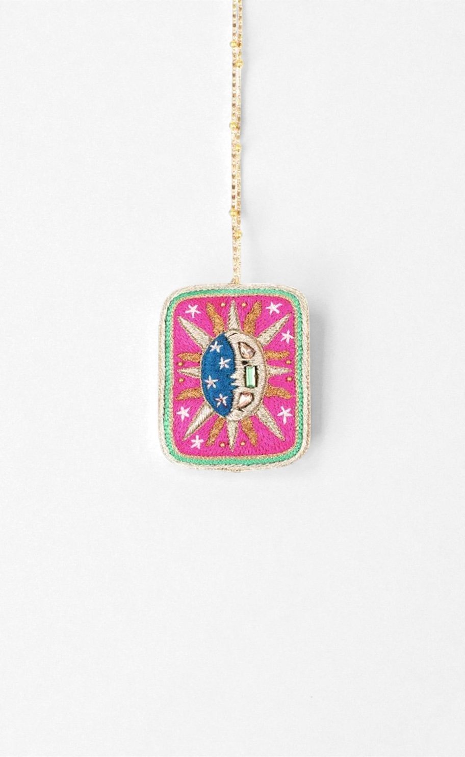 Les colliers Nahua sont brodés à la main en Inde grâce aux techniques Aari et Zardozi, héritées des cours impériales mogholes. Ces gestes millénaires, transmis de génération en génération, offrent à chaque bijou une richesse de détails incomparable.