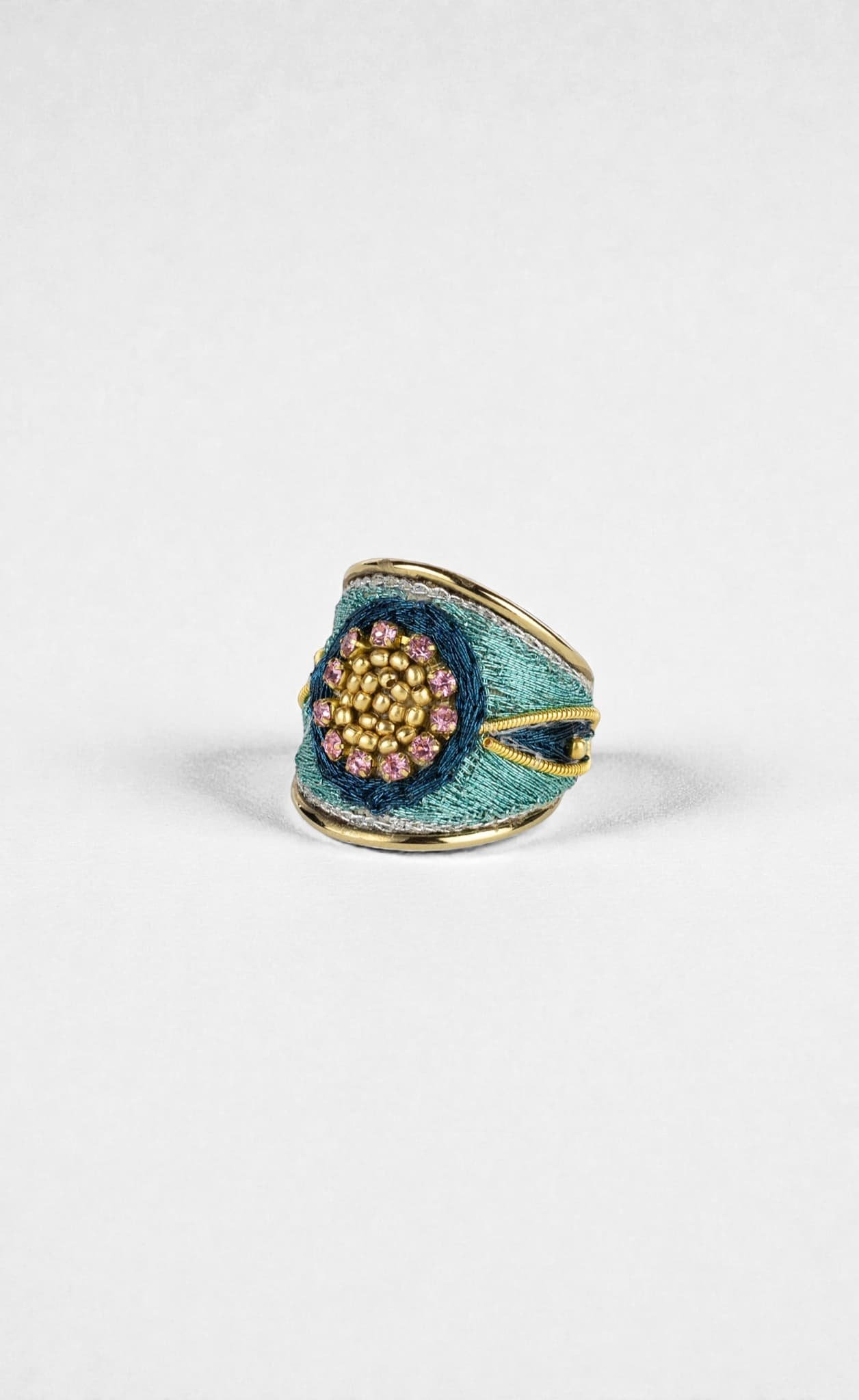 Avec Apache, Nahua brouille les frontières entre bijou, accessoire et maroquinerie. Les broderies deviennent des ornements qui se déclinent aussi bien sur des manchettes et bagues que sur des sacs et des ceintures. Cette vision unique positionne Apache comme un thème transversal, capable d’habiller la femme dans toutes ses expressions.
