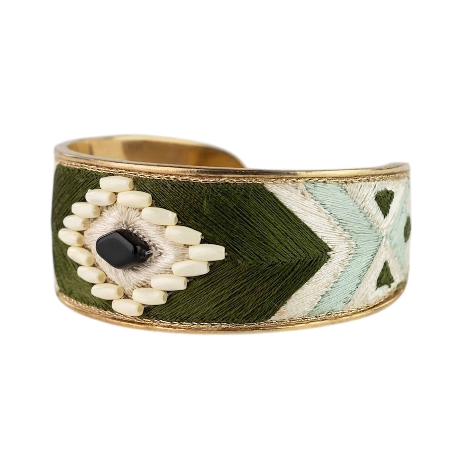 • Hand-embroidered • Adjustable snap closure • Stainless steel structure