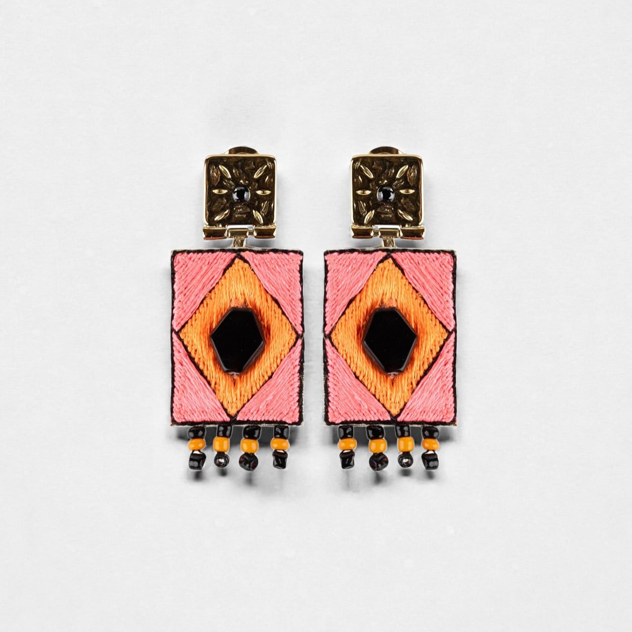 • Hand-embroidered • Leather lining • Stainless steel, anti-allergy hooks