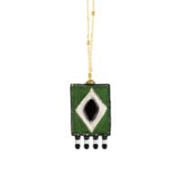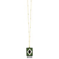 • Hand-embroidered • Semi-precious stone • Leather lining • Stainless steel and anti-allergy brass chain(40cm)