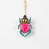 Hand-embroidered medallion in metallic thread and brass with a semi-precious stone set in brass in the center, stainless and anti-allergenic brass chain.